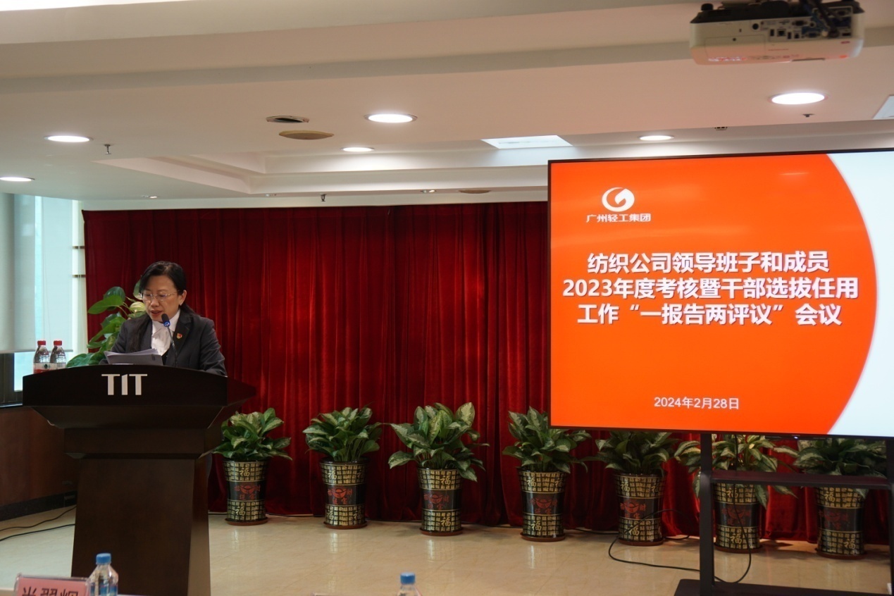 2月28日下午,拼搏在线客服党委召开领导班子和成员2023年度述职暨干部选拔任用工作“一报告两评议”会议。会议由拼搏在线客服党委副书记、工会主席丘海澜主持。拼搏在线客服领导班子成员、本部中层管理干部、属下企业领导班子成员、企业“一代表两委员”以及党员干部群众代表参加了会议,广州轻工集团党委组织部派员出席了会议。