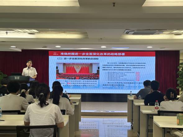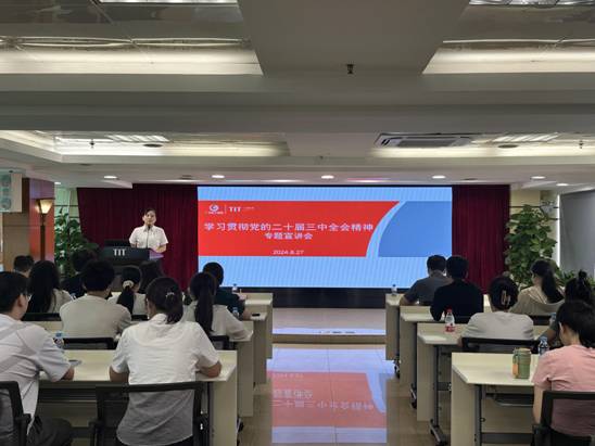 8月27日,拼搏在线客服团委书记梁晨在广德大厦15楼会议室为各团组织书记、委员,本部及纺出公司团员青年,2024年新入职管培生共47人作学习贯彻党的二十届三中全会精神专题宣讲。在宣讲过程中,梁晨通过鲜活的语言、生动的案例,从深刻把握进一步全面深化改革的重要性和必要性,深刻认识进一步全面深化改革的指导思想和总目标、重大原则、重要部署,认真落实进一步全面深化改革的实践要求等方面深入浅出地对全会精神进行了系统阐述和解读。