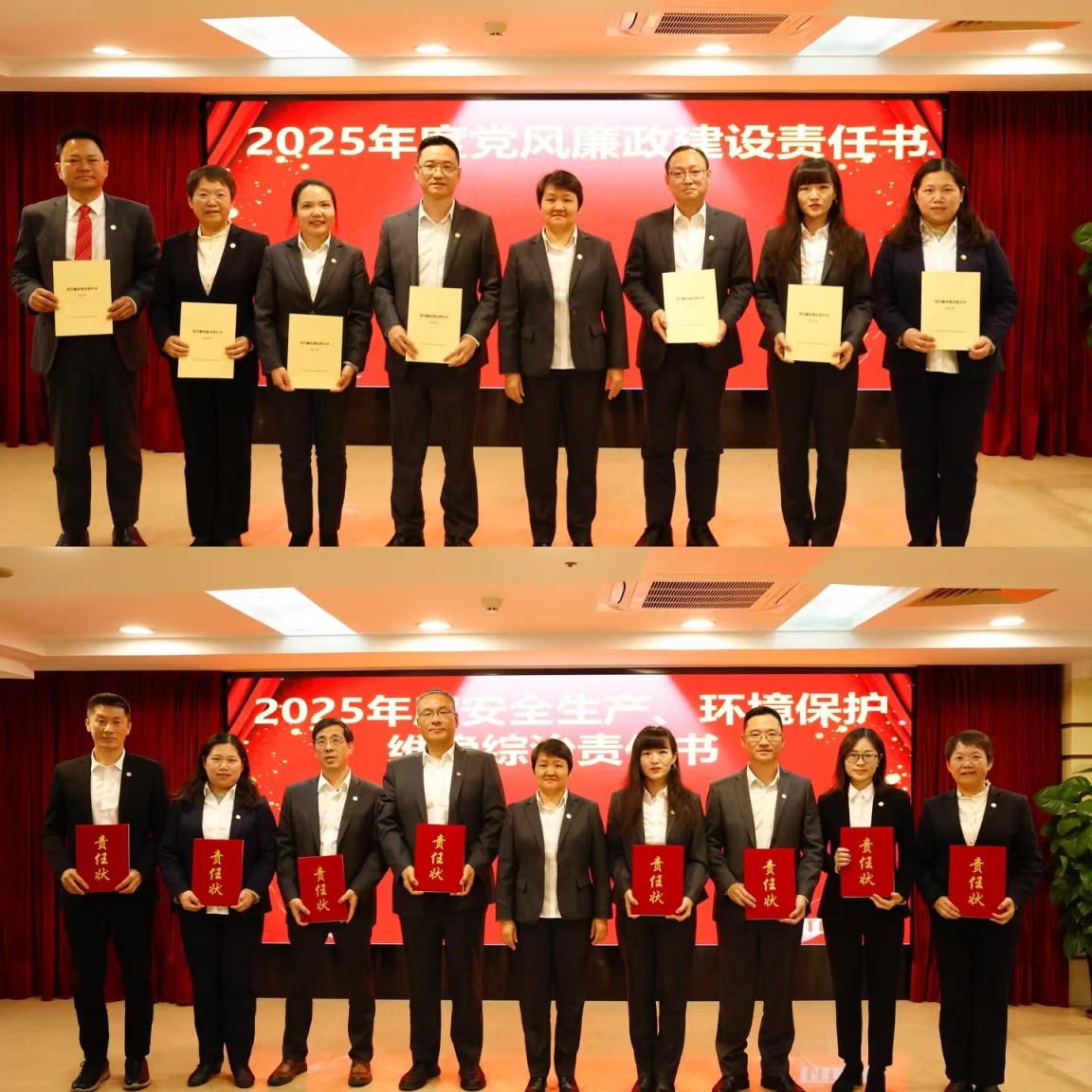 各属下企业向拼搏在线客服主要领导递交2025年度党风廉政建设、安全生产、环境保护、维稳综治等目标管理责任书。