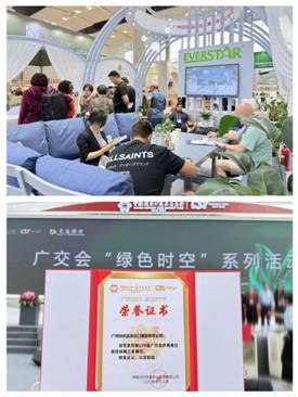 户外家具携自主品牌“EVERSTAR”最新研发设计的产品再度亮相,展出多款结合科技与环保的家具产品,以“科技融于生活美学”的理念满足消费者不同的居家生活需求,沉浸式展示吸引了众多采购商驻足询问。同时,家具展位设计因突出环保理念和创新实践获得“绿美展位优秀案例”称号,荣获“绿美三星展位”荣誉证书,彰显公司在户外生活领域的创新实力和环保承诺。